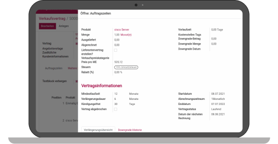 When you open the contract's order lines, recurring products can be identified by the fact that the contract information is displayed again on the order lines.